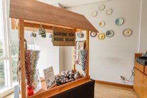 Tak kalah menarik perhatian, di salah satu sudut Incanto Restaurant terdapat traditional coffee corner, bertajuk “Warung Kopi Mang ‘Ndang”. Yang cukup menarik perhatian undangan media di siang itu. Gerobag coffee corner yang terbuat dari kayu ini mengusung konsep budaya minum kopi sambil bersantai di warung kopi khas masyarakat Indonesia. Istimewanya, kopi yang disajikan sudah menjadi 1 paket dengan camilannya. Yaitu, pilihan Pisang Goreng, Singkong Goreng, dan Kue Pukis. Sungguh sebuah sensasi citarasa khas tradisional, yang digemari hampir seluruh warga negara Indonesia. Untuk dapat merasakan asiknya minum kopi dengan nuansa warung kopi tradisional Indonesia ini, tamu hanya perlu membayar seharga IDR 45.000++/set.