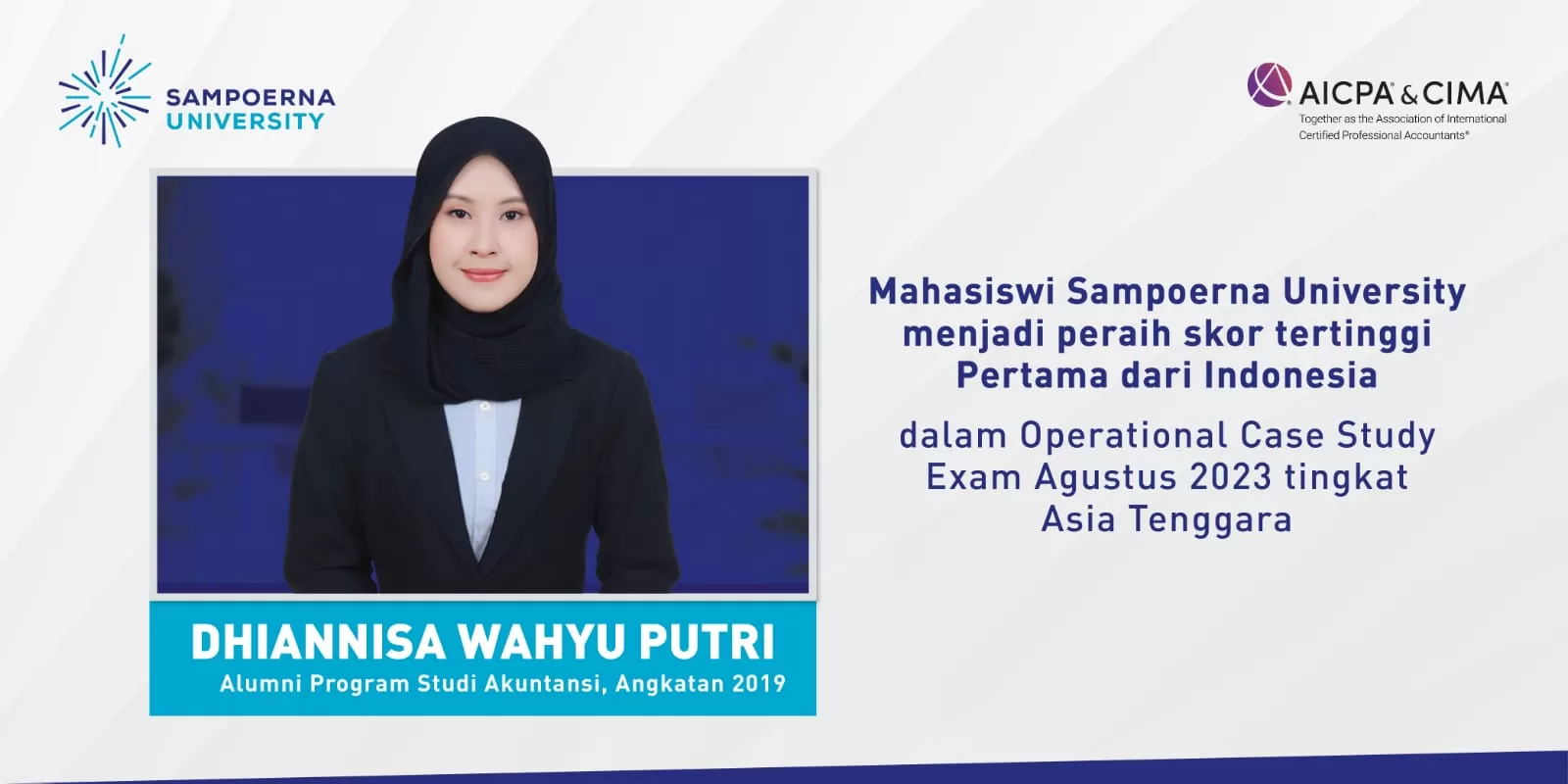 Dhiannisa Wahyu Putri, lulusan Sampoerna University yang meraih prestasi tersebut, menyampaikan. “Meraih skor tertinggi di Asia Tenggara pada ujian CIMA adalah bukti dari dedikasi saya untuk menjadi ahli akuntansi manajemen. Pencapaian ini tidak mungkin terwujud tanpa kurikulum yang ketat, dosen-dosen luar biasa, dan lingkungan pendidikan yang mendukung di Sampoerna University. Komitmen mereka terhadap standar keunggulan telah memberi saya pengetahuan dan keyakinan untuk meraih kesuksesan. Saya berterima kasih kepada CIMA karena telah menetapkan standar yang tinggi dan memberikan saya platform untuk unggul dalam memulai karier saya,” ujar Dian.